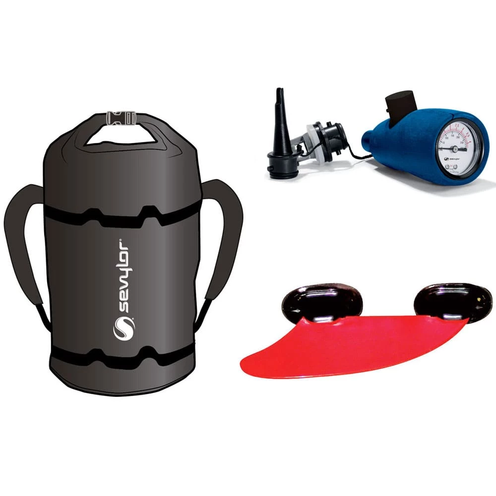 - 1 Kajak in wasserdichtem Packsack, 1 Manometer, 1 Finne, 3 Sitze, Reparaturset